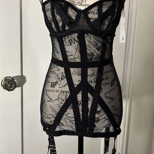BLUEBELLA Karolina Wired Sheer Basque Lingerie In Black - 34C - NWT