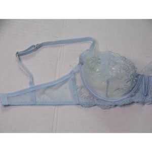 Bluebella Marseille Sheer Bra Pale Blue 32DD Retail $64 NEW w/o Tags Provocative meets elegant as this soft mesh bra with a V-shaped center wire and sheer cups romanced by swirling embroidery and delicate scallops. Polyester Polyamid Elastane Underwire Sheer Mesh Adjustable straps Hook-and-eye back closure
