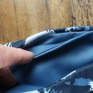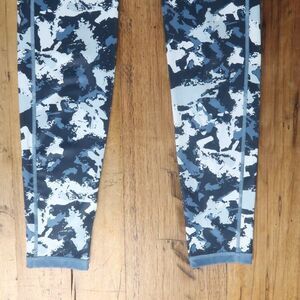 BLUE CAMO COMPRESSION LEGGINGS WITH WAISTBAND POCKET SIZE SMALL NO TAGS LOGO PICTURED BUT DON'T KNOW WHAT COMPANY IT IS PLEASE REFER TO MEASUREMENTS FOR FIT PRE OWNED LIKE NEW CONDITION