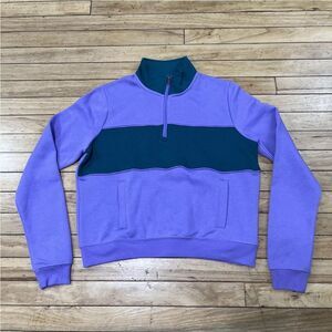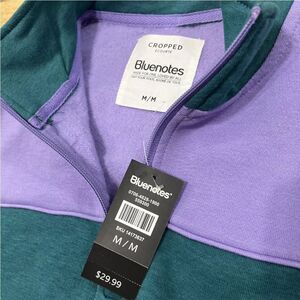 BLUENOTES Sweater Women M Crop 90S Style Colorblock Aquaberry 1/4 Zip Sporty NEW