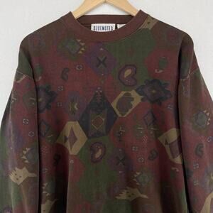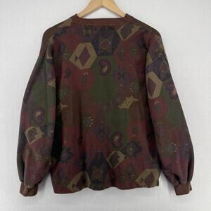 BLUENOTES Sweatshirt Womens M Aztec Southwestern Fleece Jumper Cotton Blend Maroon Red Vintage 80s