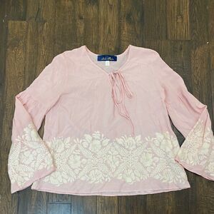 BLUE RAIN USA Women's Size XS Blouse Top BOHO Bell Sleeve Embroidered Dusty Pink
