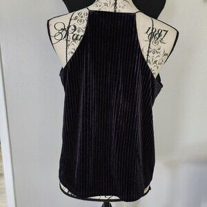 BLUES & GREYS T-STRAP TOP/ BLACK VALORE CORDED STRAPS/ SOFT COMFORTABLE FIT/SIZE MEDIUM/ LIKE NEW. S1068