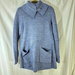 *BLUE**Soft Surroundings Wool-Blend Tunic Sweater — Shawl Neck, Pockets, Small