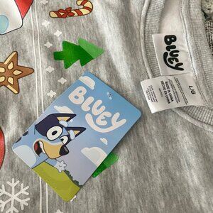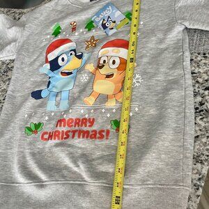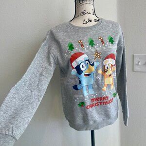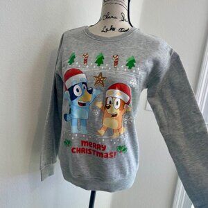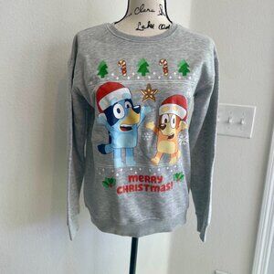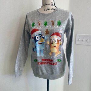 BLUEY & CHILLY HELLER UGLY CHRISTMAS SWEATSHIRT SZ S KIDS L GRAY CARTOON KAWAII