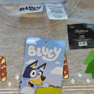 Festive crewneck with playful holiday design. Features cheerful characters and seasonal motifs. Perfect for holiday celebrations. This is an amazing brand new with tags. official bluey sweatshirt size large original price was $49.99 this thing has never been worn. absolutely beautiful. amazing characters. bright graphics. you will not be disappointed. Christmas is coming.....