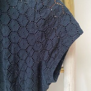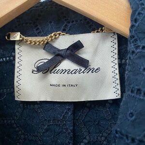 BLUMARINE Navy Eyelet Short Sleeve Summer Pockets Blazer Blouse Top Sz 40 Italy