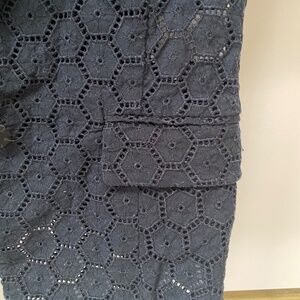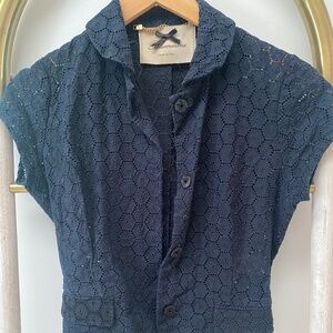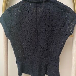 BLUMARINE Navy Eyelet Short Sleeve Summer Pockets Blazer Blouse Top Sz XS Italy