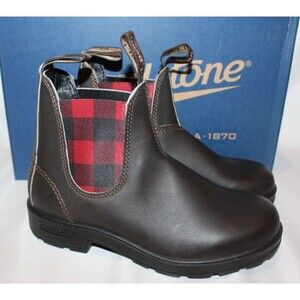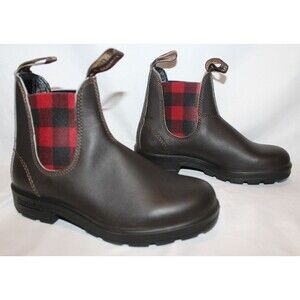 BLUNDDSTONE WOMEN'S 2308 BROWN RED PLAID LEATHER CHELSEA BOOTS NIB