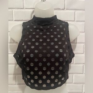 BLUSH MARK Women's Perforated Sleeveless Turtleneck Top & pants black /M