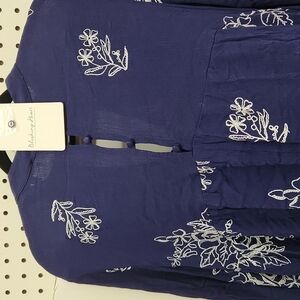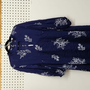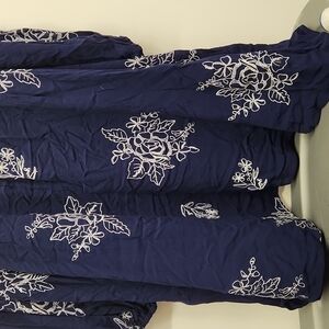 Blushing heart peasant swing mini dress NWT. navy blue with white floral embroidery. button back with chest cut out