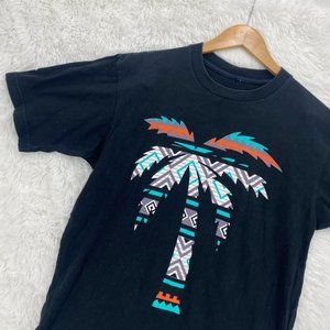 BLVD SUPPLY Men's Black Short Sleeve T-Shirt White Graphic Palm Tree Large L