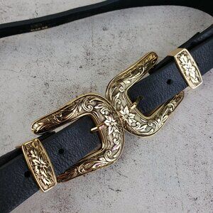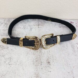 B-Low The Belt Bri Bri Genuine Leather Double-Buckle Western Belt Black /Gold XS