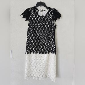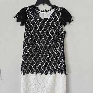 BMJ Studio Women’s Lacey Black& Ivory Embroidered Dress sz 12 Wedding
