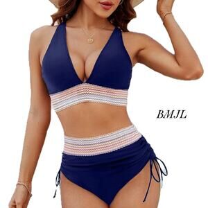 BMJL Blue High Waisted Bikini Swimsuits Two Piece Bathing Suits 2024 NWT Size M