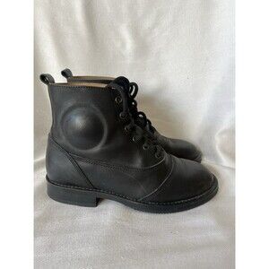 BMW Black Leather Lace Up Ankle Moto Riding Boot W/ Ankle Protector Women SZ 6