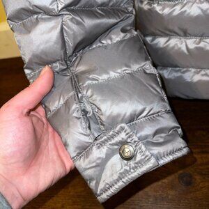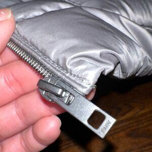 BMW Motorsport down puffer jacket with front pockets and small brown leather bmw logo on the back