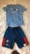 BMW Motorsport set with light blue T-shirt and beautiful 3-color Puma BMW shorts. Features iconic logo design.