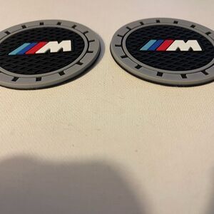 BMW Motorsports car cup Coasters in black and gray with logo Set of 2 NWT