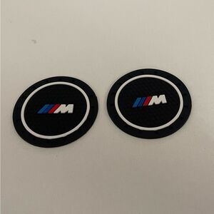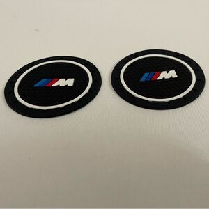 BMW Motorsports car cup Coasters in black with logo Set of 2 NWT