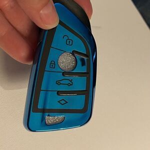 BMW Logo key fob Keychain Blue Leather & Key Fob Cover in blue NWT