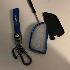 BMW Logo key fob Keychain in blue leather & key fob cover in blue NWT