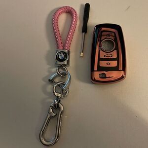 BMW Logo key fob Keychain in pink & key fob cover in black & pink NWT ◦ New in package - aftermarket ◦ Made for key fob & Carabiner is easy to add other keys etc with push opening, could also hang on your belt buckle ◦ Built in car logo, does not fade ◦ Metal part is high strength alloy ◦ See pictures for detail on fob cover to make sure it fits yours ◦ Shipped quickly, normally in a day ◦ Bundle and save See pictures for details. Smoke free and pet free shop Thanks for shopping in my closet