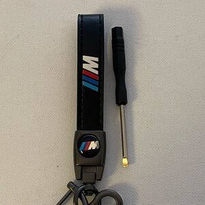 BMW Motorsports Logo key fob Keychain in Black leather NWT
