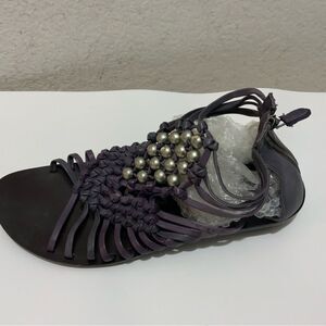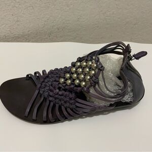 B Makowsky Leather Woven Beaded/Studded accents Gladiator style