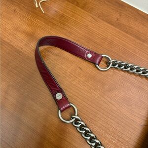 B.Makowsky Shoulder Handbag Red Pebbled Leather Studded Screwhead Chain Strap