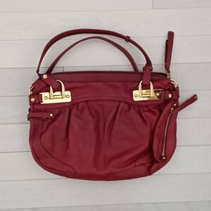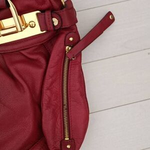 B. Makowsky Women's Leather Multiple Pockets Gold-tone Hardware Shoulder Bag Red