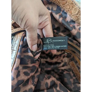 B.Makowsky Women's Size Large Brown Croc Leather Shoulder Bag Snap Closure