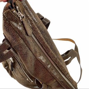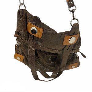 B. Makowsky brown metallic leather tote shoulder bag crossbody