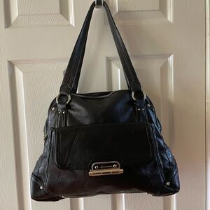 B Makowsky leather Black large shoulder bag gold & Silver tone hardwares.