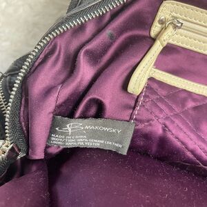 B Makowsky leather Black large shoulder bag gold & Silver tone hardwares.the bag has a front with flop closure and five compartments three with top zipper closure the inside lining of the middle compartment has a side zipper and a side pocket the other two compartments have magnetic top closure.pre owned in good used condition the front pocket is missing the magnetic part but did not affect the closure otherwise normal wear see all pictures any questions please message.F1