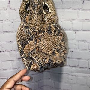 B Makowsky Brown Python Print Patent Leather Shoulder Bag