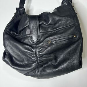 B. Makowsky Women's Black Leather Hobo Shoulder Bag