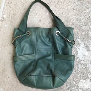 This is a nice bag but it is not new and it has discoloration and some stains. Please look at pictures, this bag could be re-stained and it's a beautiful bag, color change. Inside super clean and the chrome is all good