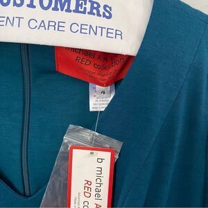 B Michael America Red Women’s V Neck Puffy Long Sleeve Teal Midi Bodycon Dress 4
