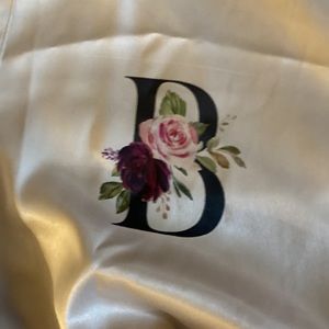 Silky Robe from Etsy. Champagne with floral B on upper left side on the front. Comes with waist tie. Floral detail on end of sleeves/bottom of robe. XXL/XXXL. Like new. Smoke free pet free home