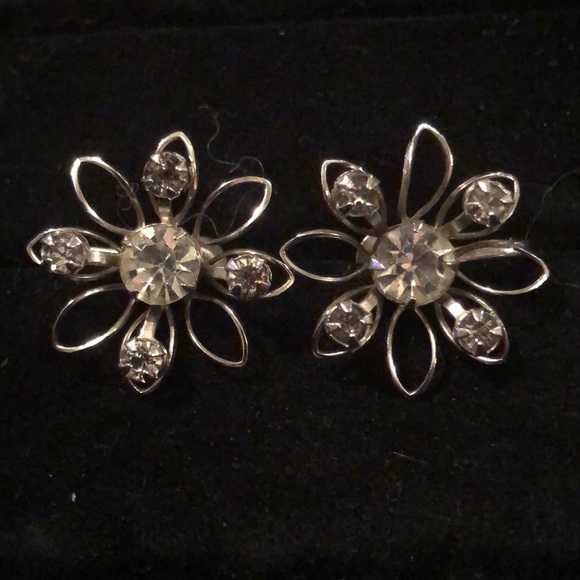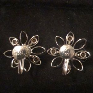 B.N. Silver Tone Rhinestone Screwback Earrings