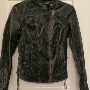 BNCI by Blanc Noir, Asymmetrical Velvet Moto Jacket with Laced Sleeves, NWT, NEW