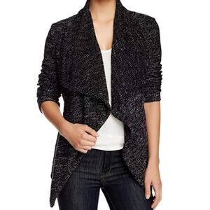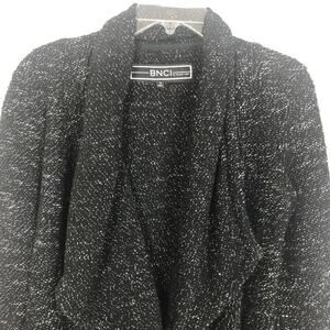BNCI by Blanc Noir Tweed Drape Front Shawl Collar Cardigan Sweater Size Small