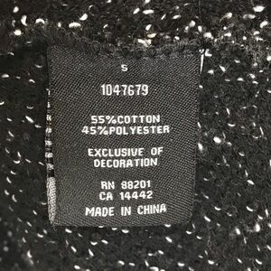 This cardigan looks like tweed but is much softer. Black and white variegated weaving.