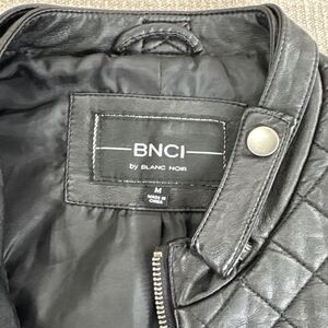 BNCI vegan leather jacket. Biker, motorcycle style with zipper accents, quilted shoulders and elbows.