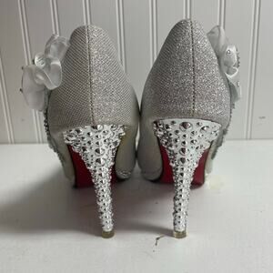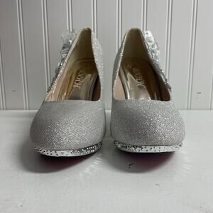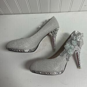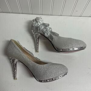 BNHH 9.5 (41) silver on silver high heeled shoe bridal rose glitter pump formal