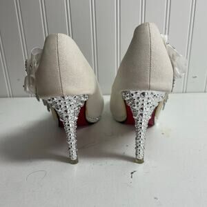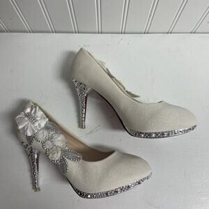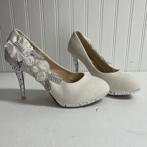 BNHH 9.5 (41) white silver high heeled shoe bridal rose glitter pump formal cottagecore bohemian