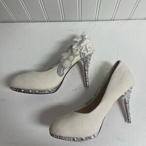BNHH 9.5 (41) white silver high heeled shoe bridal rose glitter pump formal boho