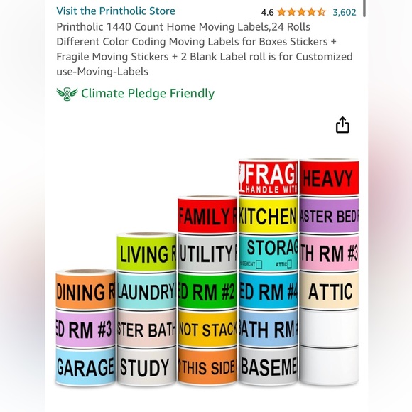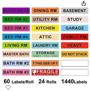 Moving labels to mark your moving boxes so they end up in the correct room! These labels got packed in one of the first boxes so I didn’t get to use them. Such a smart idea!!!