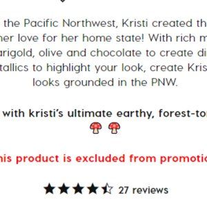 Inspired by the Pacific Northwest, Kristi created this palette to capture her love for her home state! With rich mattes in a range of marigold, olive and chocolate to create dimension and magical metallics to highlight your look, create Kristi’s signature looks grounded in the PNW.